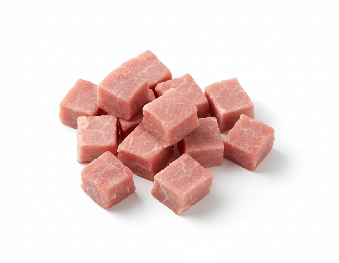 The leg cut offers firm texture and high protein, while the bone and skin add depth, juiciness, and traditional taste. Perfect for slow-cooked gravies, roasts, curries, or grills, these cubes are freshly prepared from farm-raised pigs and packed hygienically to preserve their natural freshness.